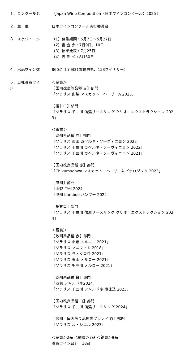 山梨県で開催された「Japan Wine Competition(日本ワインコンクール)2025」において、