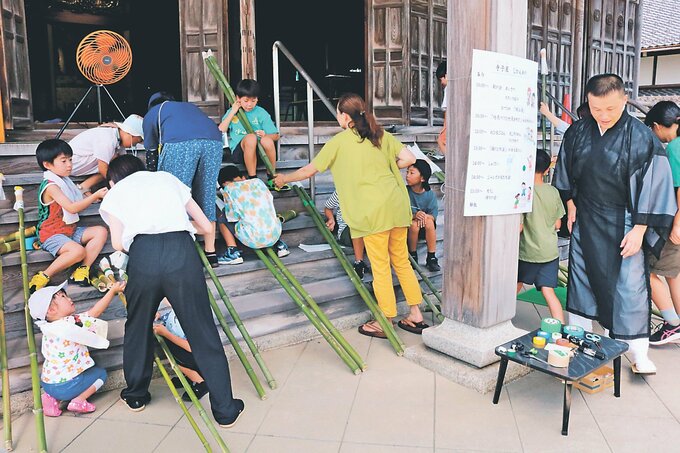 にぎやかな境内の様子に、同寺の園家護久住職(51)は「年末の鐘突き以外に子どもたちが寺に集まる機会は少ない。夏休み期間にまた寺子屋を開きたい」と話した。