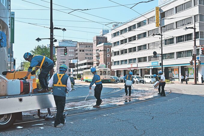 現場は地鉄ビル前-電気ビル前間。富山地鉄の作業員が水をまいたほか、ずれたレールを元の位置に戻す作業を行い、同9時35分ごろ運転を再開した。121本が区間運休または運休し、約4千人に影響した。