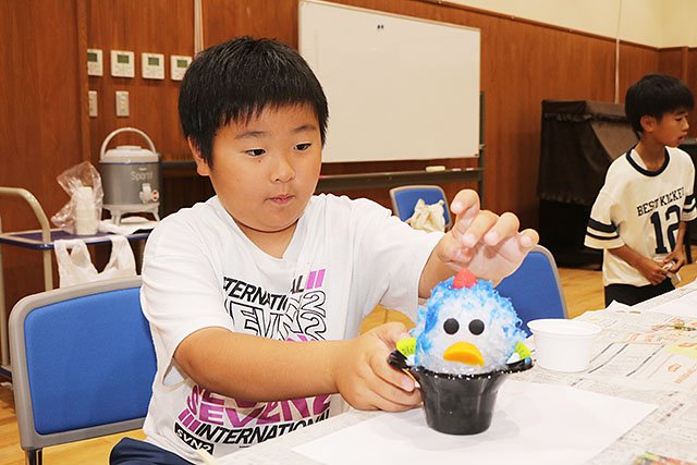 ペンギンをイメージして作ったという熊野小3年の長森大和さん(9)は「本物のかき氷みたい」と笑顔を見せた。