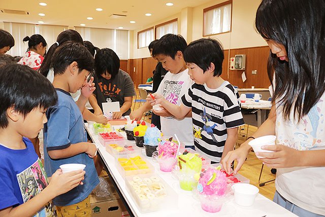 食品サンプルの制作体験教室が29日、富山県富山市悪王寺の富南会館であり、同市熊野地区の児童ら20人が涼しげなかき氷を本物そっくりに再現して楽しんだ。