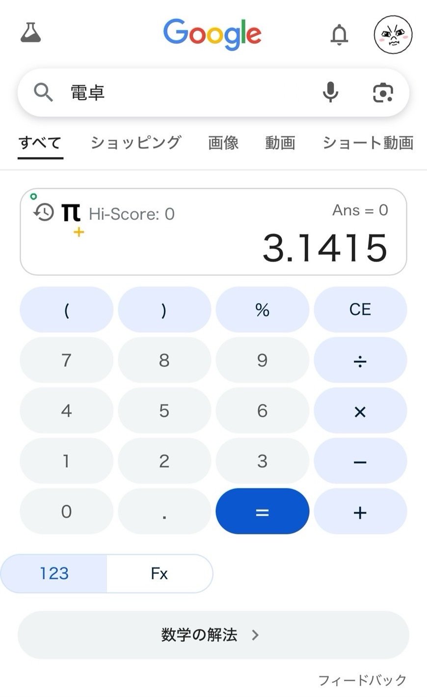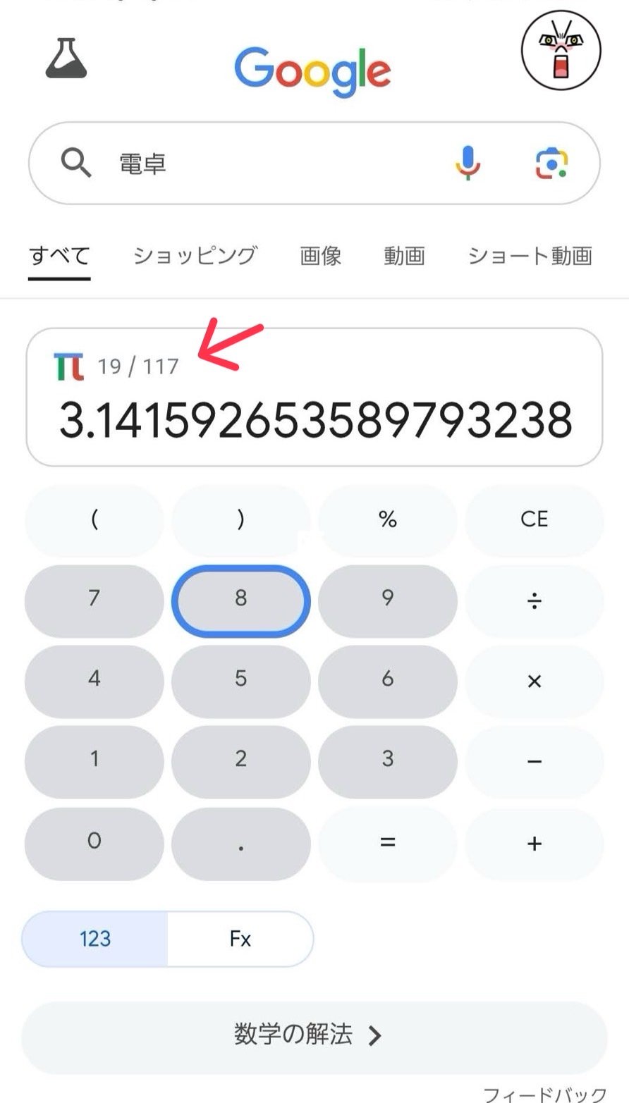 暇を持て余した娘が、私のスマホで電卓を出して何を計算してるんだろうと思ったら、円周率をどれだけ覚えているかチェックをしていました。