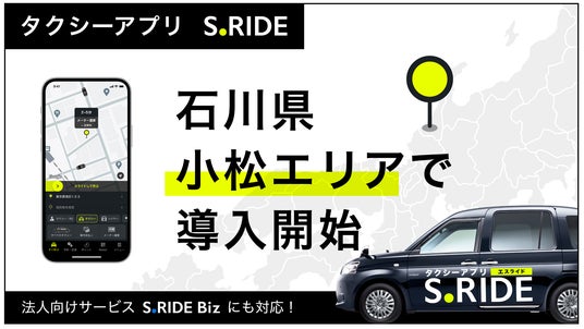 S.RIDE株式会社(本社:東京都港区、代表取締役:橋本洋平、以下S.RIDE)は2025年7月30日(水)より、石川県 南加賀交通圏(小松市)において、大和タクシーグループ 大和自動車交通株式会社が保有する車両16台に、タクシーアプリ「S.RIDE(エスライド)」のサービスを導入します。これにより、石川県内では金沢エリアに続き、小松エリアでもS.RIDEのご利用が可能となります。あわせて、法人契約プラン「S.RIDE Biz」も同エリアで提供を開始します。今後もサービス展開をさらに拡大し、地域の移動利便性向上に貢献してまいります。