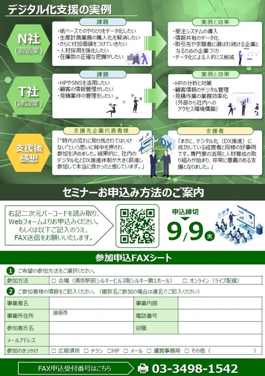 これらの経験とネットワークを活かし、須坂市においても、地域企業がDXに取り組むきっかけを創出し、経営課題の可視化や業務効率化、売上向上といった具体的な成果につながる支援を実施してまいります。