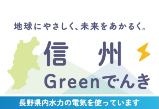 長野県内の水力発電所などでつくられた電気に、当該発電所に由来する非化石証書の活用により環境価値を付加することで、長野県産電気として再生可能エネルギー100%かつCO2ゼロエミッションの電気を提供するメニューです。