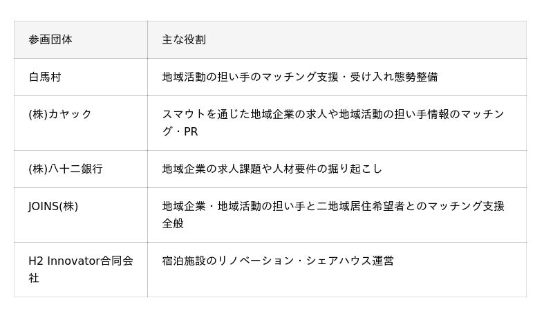 ◆「白馬村二地域居住推進コンソーシアム」参画団体と役割