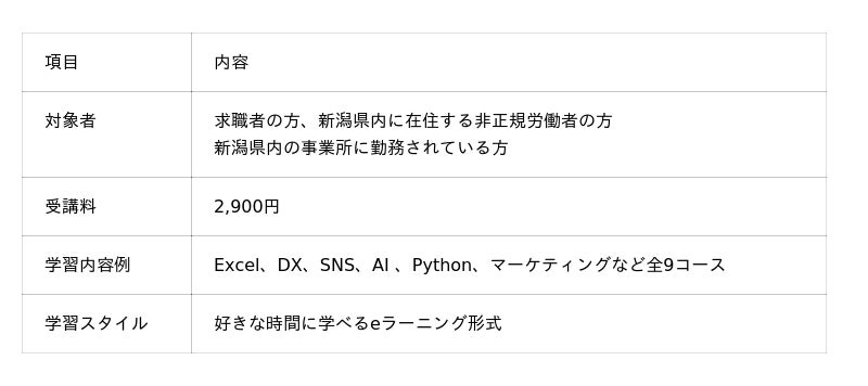 「新潟県デジタル人材リスキリング支援事業(デジタル技術基礎コース)」を令和7年8月1日より本格実施~月額2,900円で、誰でも・どこでも・今すぐ学べるeラーニング講座を提供~