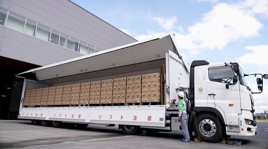 物流の効率化を行うマテリアルハンドリングの総合メーカー、オークラ輸送機株式会社(本社:兵庫県加古川市、代表取締役社長:大庫良一、以下 オークラ輸送機)は、「サントリー天然水」の最新鋭生産拠点「北アルプス信濃の森工場」(長野県大町市、以下信濃の森工場)の出荷ヤードにトラックへのパレット自動積み込み装置「トラックローダVL-5」(以下VL-5)を4台納入、本稼働を開始しました。
