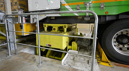 信濃の森工場は、配送を運送事業者に委託し、28パレットが積載できる大型トレーラで出荷します。他工場では、フォークリフトで1車両約30分かけて積み込みますが、VL-5ならわずか3分で完了します。