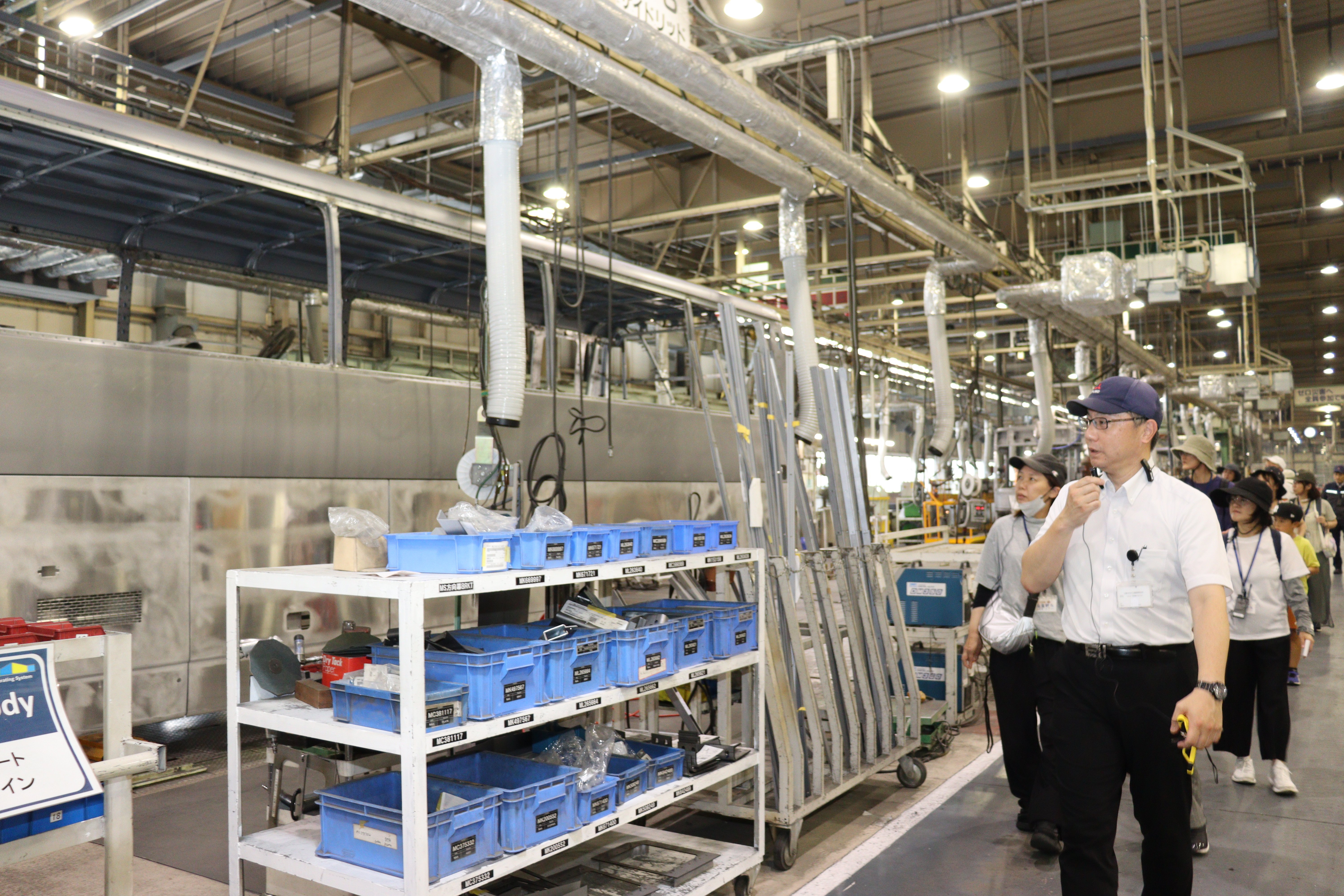 三菱ふそうバス製造(富山市)は大型バスの生産工程を見学しました。