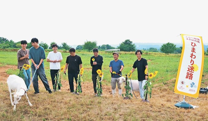 開通式で同プロジェクトの村井斉昭代表と同サークルの高橋克弥代表(3年)が「黒部の良さが伝わるようPRしたい」とあいさつ。同牧場の橋場和博場長や飼育されているヤギが加わり、一緒にテープカットした。