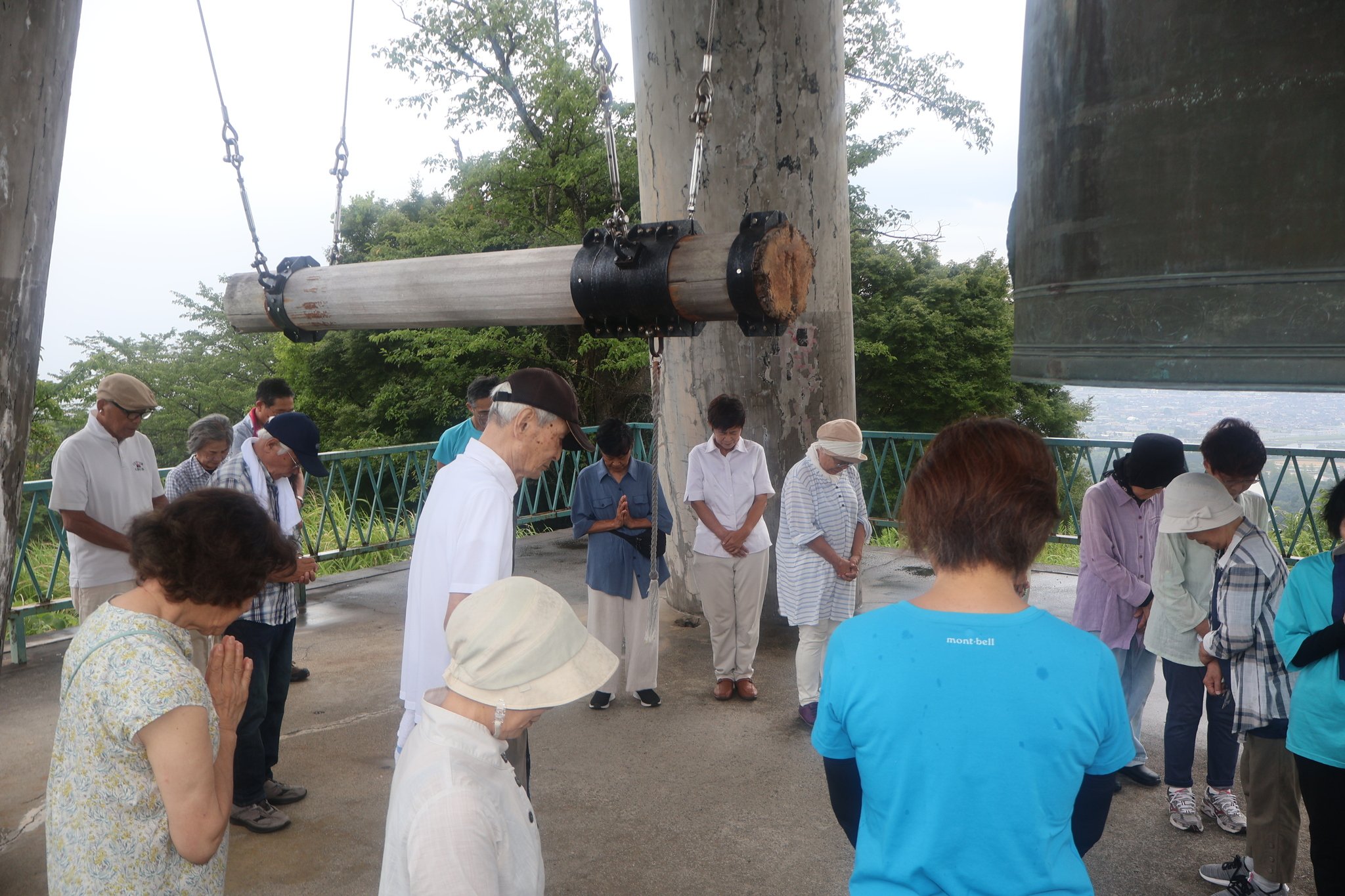 原水爆禁止高岡市連絡協議会(米谷信義代表理事)は、高岡市の二上山にある「平和の鐘」を突き、参加者が平和を願った。