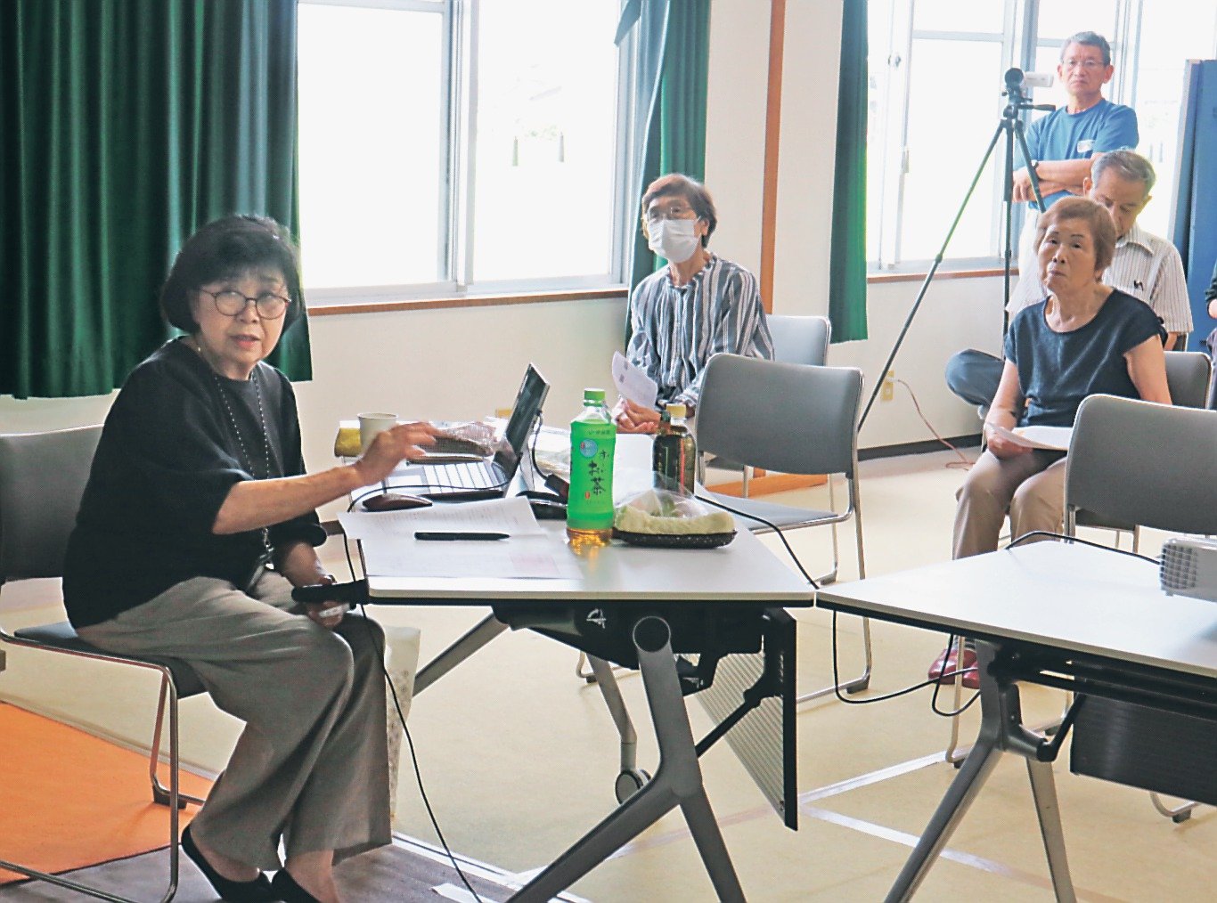 講演会は、同市竹内の真敬寺(しんきょうじ)の宮地修住職が5月に広島市の平和記念公園を訪れた際、伝承者の派遣事業を知って企画。広島への原爆投下から80年になった6日に合わせて招いた。