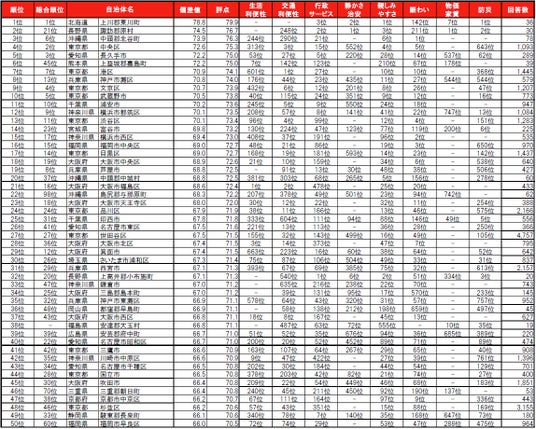 ●1位~13位までの自治体は、偏差値70を超えており、相対的に極めて高い評価になっています。