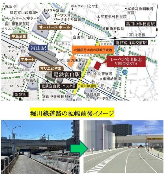 ※堀川線拡幅後イメージ図:出典/富山市HP(https://www.city.toyama.lg.jp/shisei/machizukuri/1010796/1006457.html)
