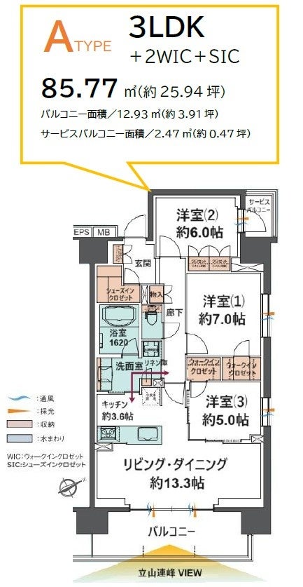 プランニングは、3LDK・65m²超~4LDK・96m²超の全84 邸でゆとりのある暮らしを実現。全邸東南向きのバルコニーからは朝日に輝く立山連峰の眺望※2を楽しめます。また、洗浄力と節水性を両立するオリジナルのウォーターシステムを採用し、毎日の生活の質を高めます。