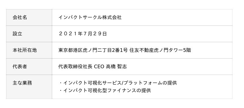 ※1:インパクトサークルでは、事業会社や金融機関を対象に、インパクトに関する取り組みや情報発信の高度化を支援しています。「はじめてのインパクト可視化」にも対応しておりますので、詳しくは以下のURLをご覧ください。
