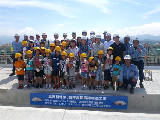 ・福井高柳高架橋見学(橋面からの見学、高所作業車体験、PC板体験)