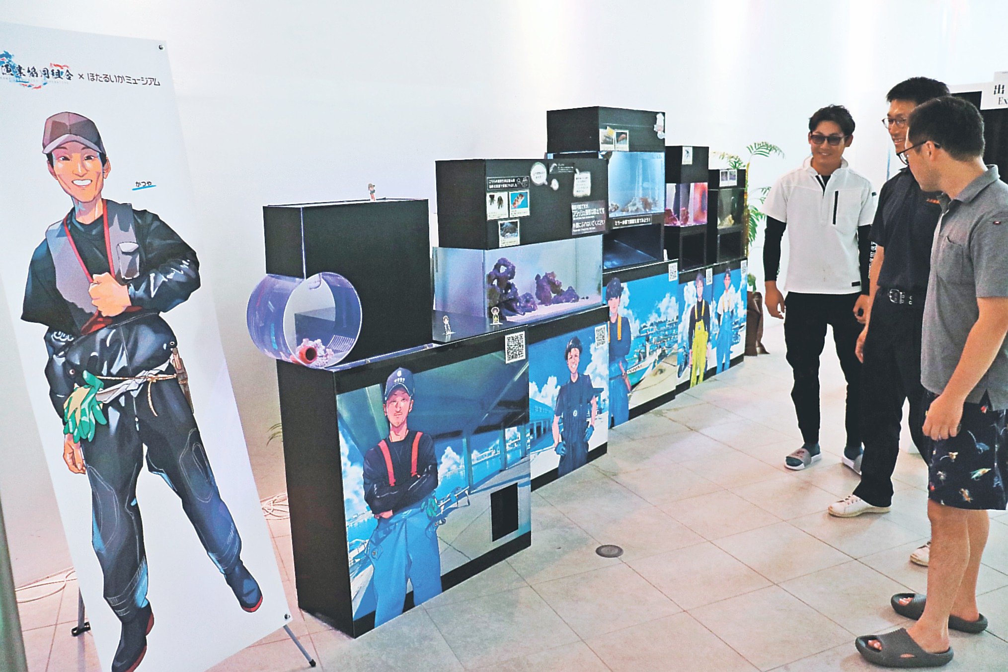 滑川漁業協同組合の漁師にスポットを当てた特別展「ほたるいかの眠る海で活躍する漁師たち」が、富山県滑川市中川原のほたるいかミュージアムで開かれている。同館の展示に協力する漁師の仕事や、市特産のホタルイカ以外にも滑川で見られる魚や海の生き物を知ってもらおうと企画。漁師のイラストなどを館内に飾り、漁業を身近に感じてもらいたい考えだ。