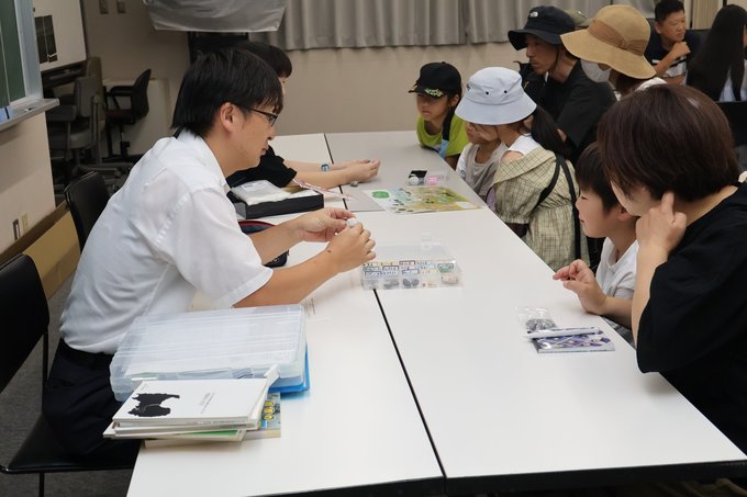 自由研究を通して子どもたちに科学への興味関心を高めてもらおうと、同館が毎年開いている。物理や動物、化石など分野別に8ブースを設けた。児童は自分で採取した岩石や実験結果を記録した用紙を見せながら、学芸員や専門家にまとめ方について相談していた。
