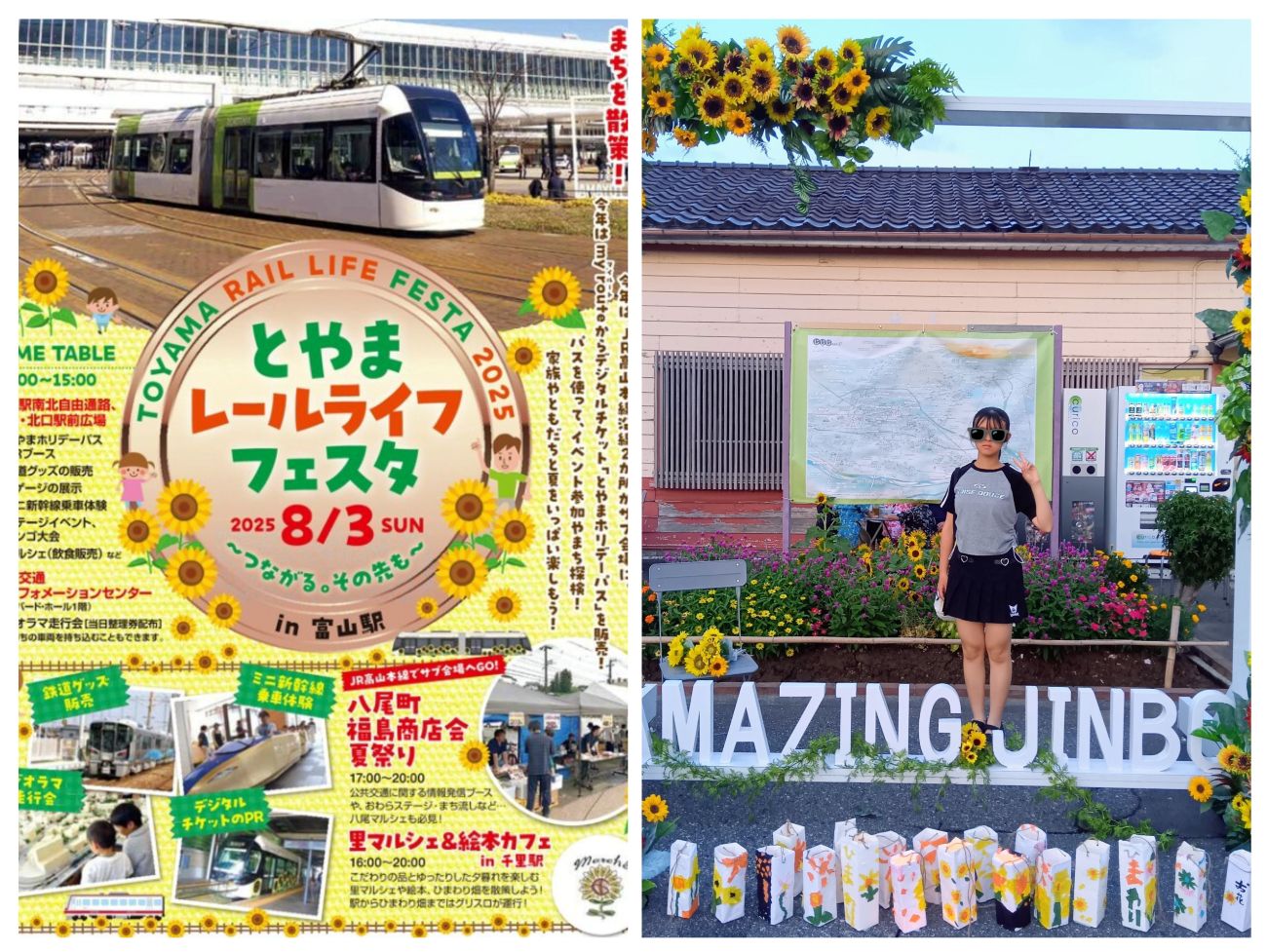このフォトフレームと羽根のヒマワリ畑の写真が富山駅に飾られていました✨