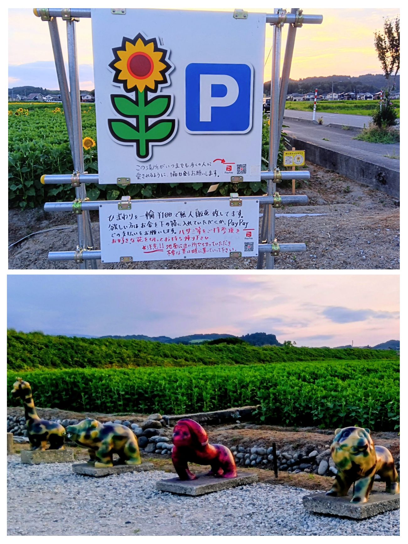 こちらのヒマワリ畑では好きなヒマワリを購入できるそうです。