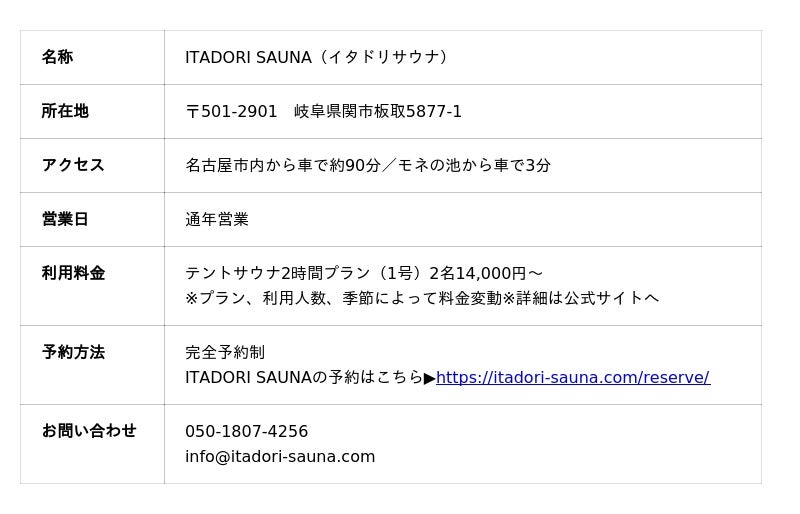 メール:info@itadori-sauna.com