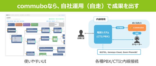 commuboは「継続的で」「複雑な」音声の会話に対応する自然会話AIボイスボットです。