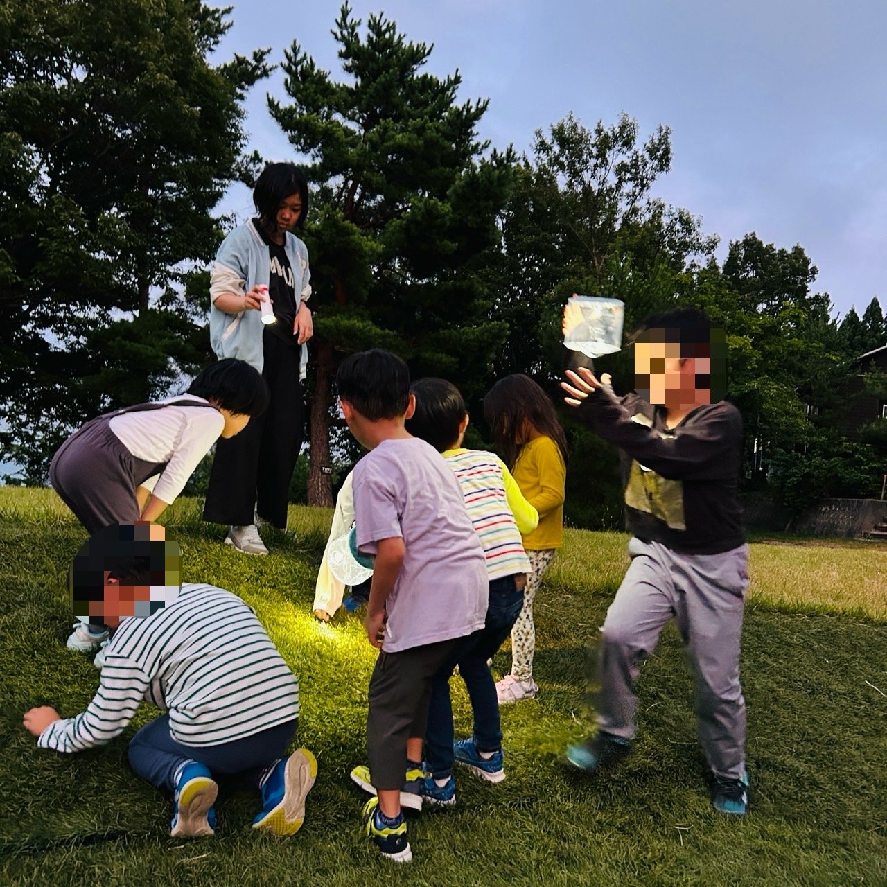 炎の明るさに寄ってくるのか、バッタなど昆虫を捕まえるのに夢中で、子供たちはとても賑やか^^