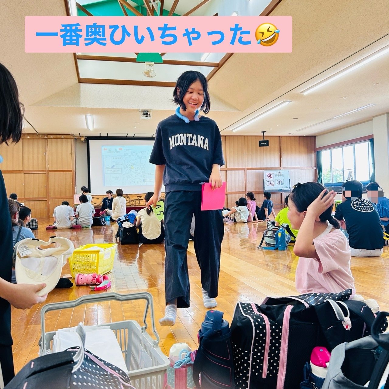 参加者は午後4時に集合し、オリエンテーション後に宿泊等の抽選があり、娘たちが引いたのは一番遠い分宿棟・・・あの坂を何往復もしなきゃいけないのね(笑)