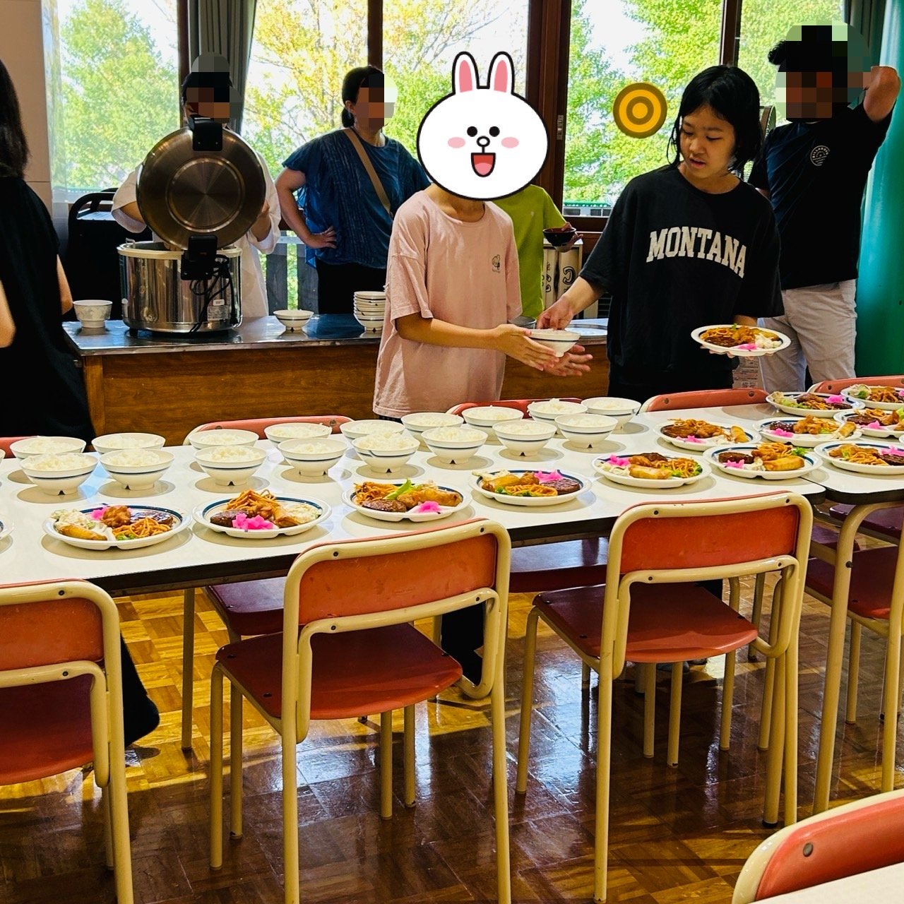最初の活動は、子供たちによる食堂の配膳。