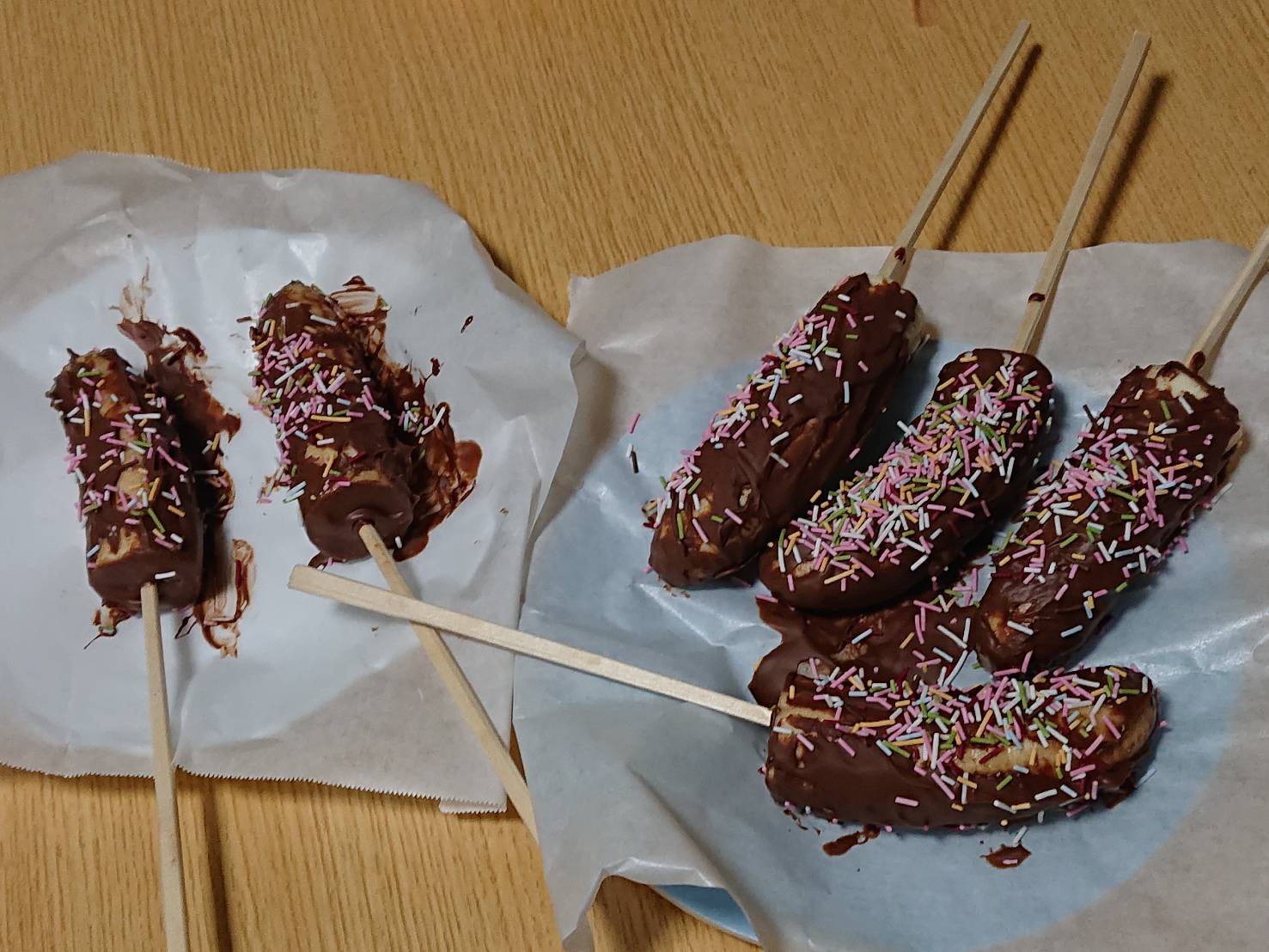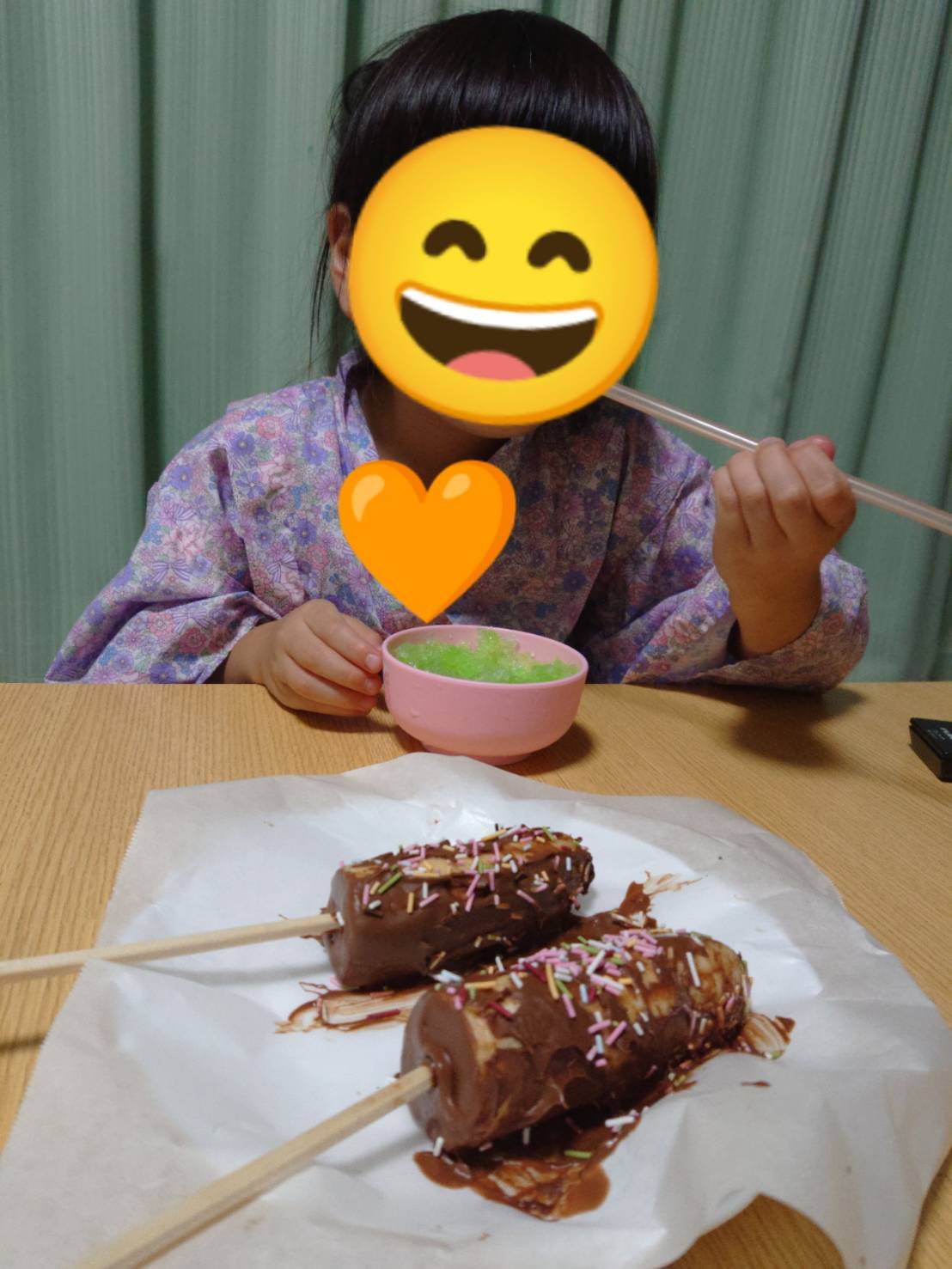 用意したのは、チョコバナナ、どんどん焼き、トウモロコシ、かき氷、ラムネ!