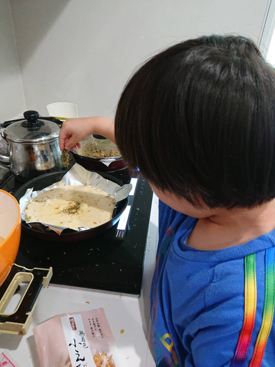 息子にはどんどん焼き作りを手伝ってもらいました✨