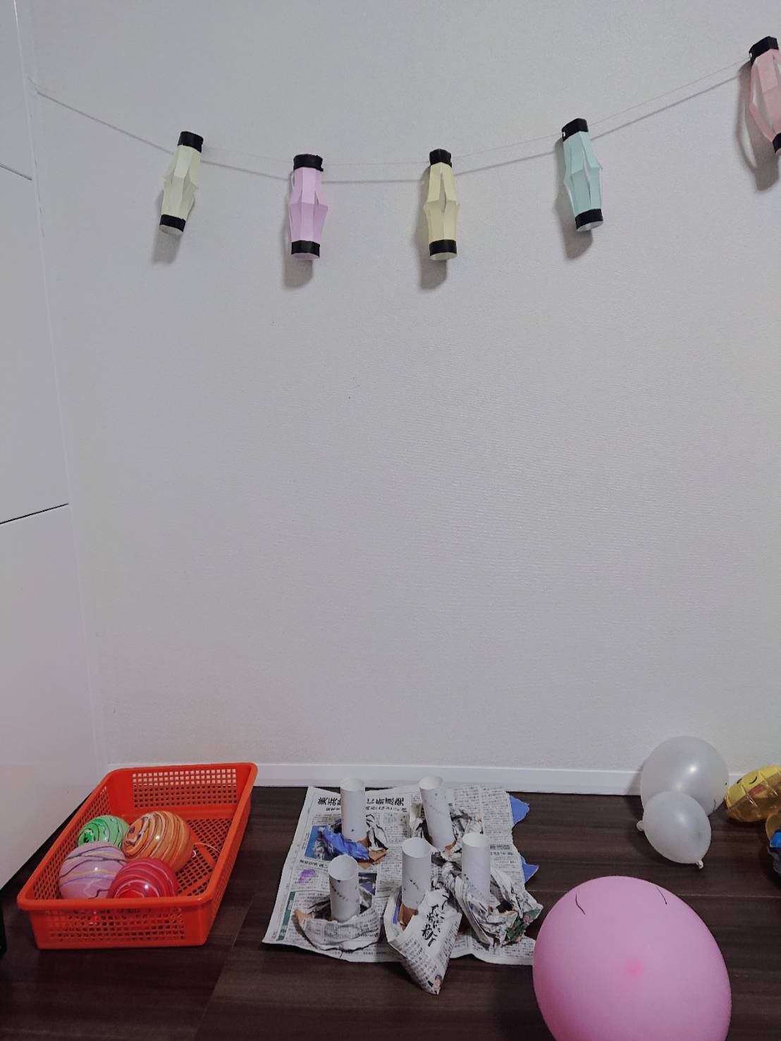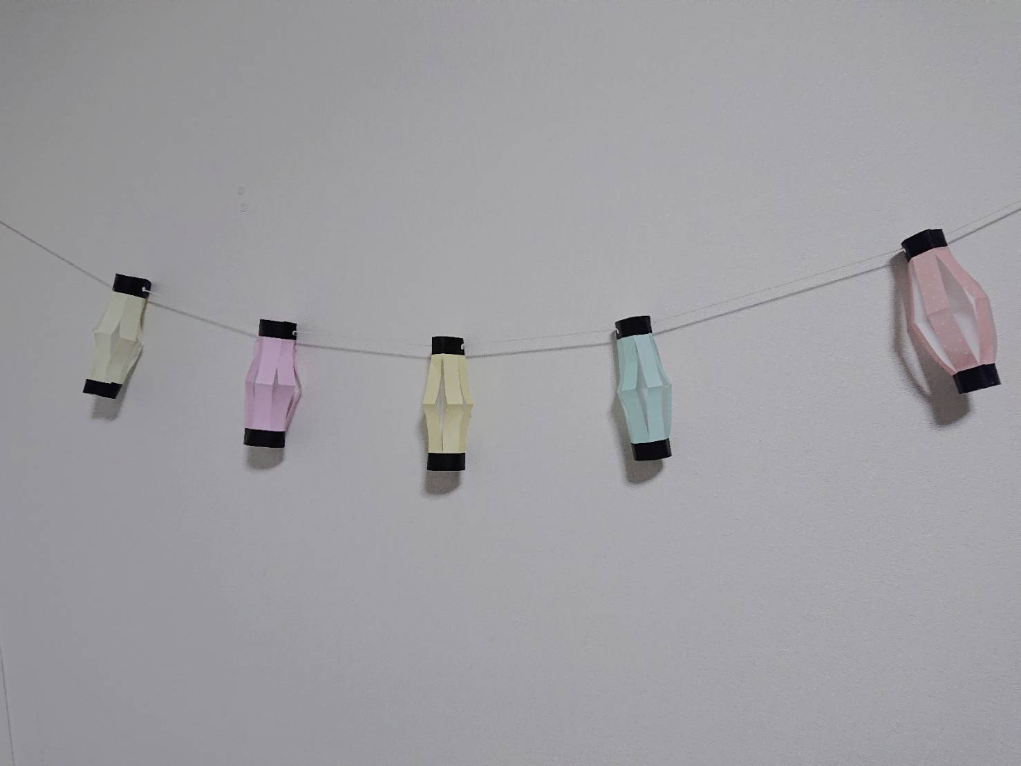 まずは娘と一緒に折り紙でちょうちん飾りを作って飾り付け✨