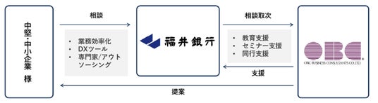 本協業により、福井銀行が展開する「ふくぎんのデジタル化支援サービス」と、OBCが提供する業務ソフト「奉行シリーズ」を連携させ、企業の業務効率化および生産性向上を包括的に支援します。これにより、バックオフィス業務の効率化に向けて、より最適かつ的確なデジタル化の提案が可能となります。