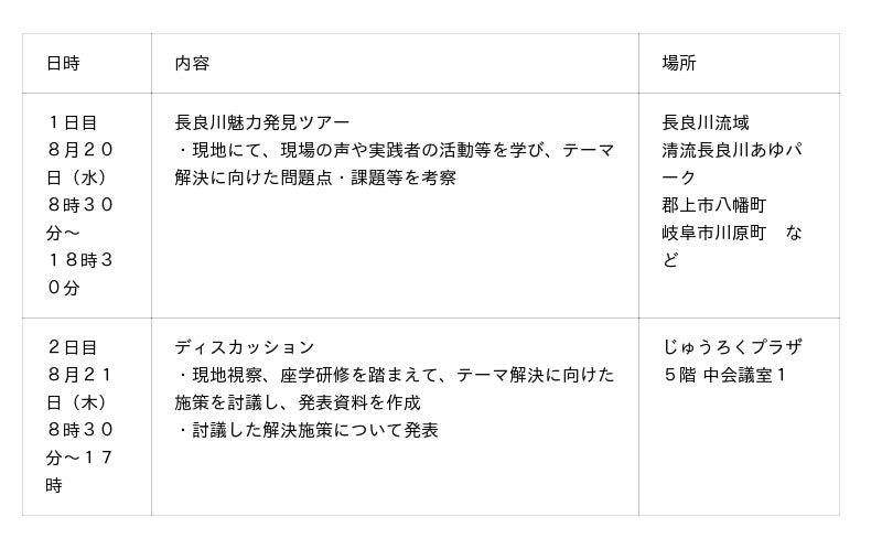 岐阜県及び世界農業遺産「清流長良川の鮎」推進協議会では、本年度、世界農業遺産認定から10年を迎えることから、この節目を絶好の機会ととらえ「若者の発信力」を活用して、世界農業遺産の価値を伝えていくこととしています。