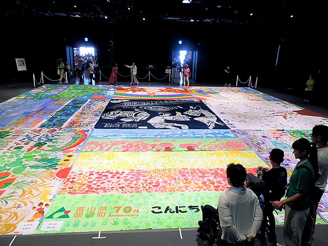 富山県代表として、朝日町の子育てサークル「なのはな」を中心とした実行委員会が企画に取り組んだ。朝日町の作品は1~3月に募集に応じた児童が制作。木綿生地(縦1メートル、横5メートル)5枚に「桜並木」「朝日岳の山並み」「菜の花」「チューリップ」などを描き、祖父母世代が協力して縫い合わせた。