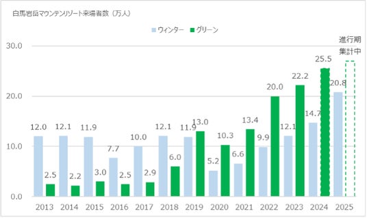 この結果、2024年グリーンシーズン(2024年4月19日~11月17日)においては過去最高の約25.5万人の来場者数を記録し、同年ウィンターシーズン(2024年12月20日~2025年3月30日)を含む2024年度全体では2000年以降最高となる46.3万人超に到達いたしました。