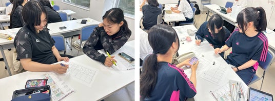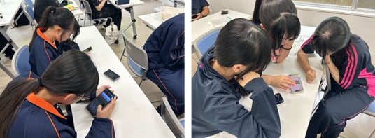撮影した動画は雄島コミュニティセンターに戻り、携帯のアプリを使って編集。今まで編集経験がある高校生が編集経験のない高校生に教え合うなど、お互いに協力して動画をつなげていました。