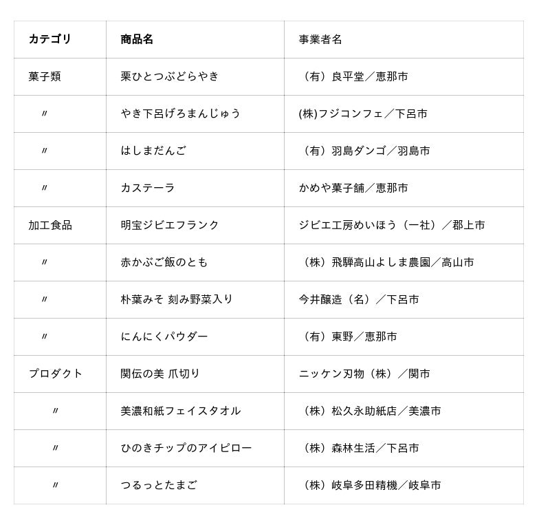 今回の「岐阜まるごとフェア」では、この岐阜の風土を感じていただける県産品を中心にセレクト。