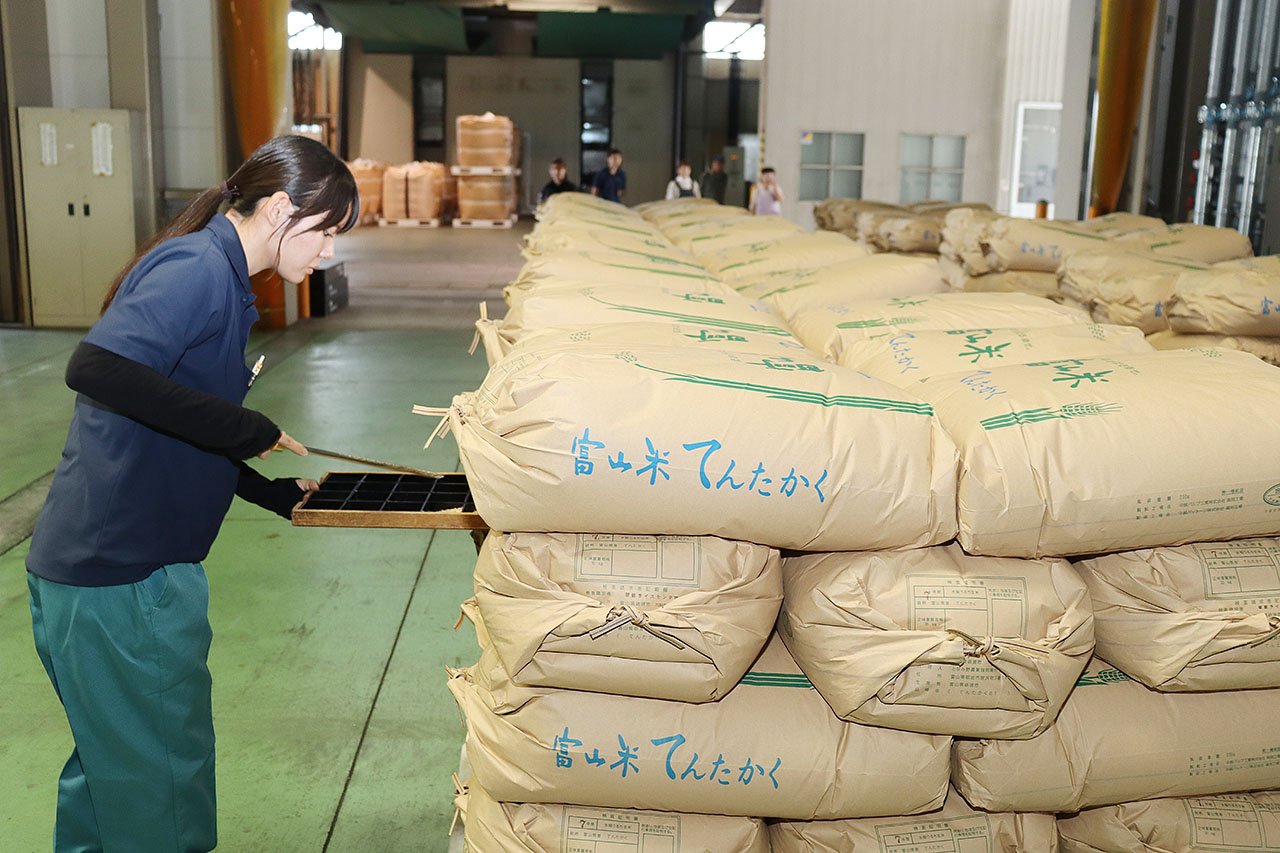 JAとなみ野は25日、富山県砺波市五郎丸のとなみ野ライスターミナルで2025年産米の初検査を行い、わせ品種「てんたかく」は10・8トン全量が1等だった。高温少雨の影響で平年より粒が細く軽い傾向にあり、胴割粒(どうわれりゅう)やカメムシによる着色がやや多かったが、高い品質を維持した。