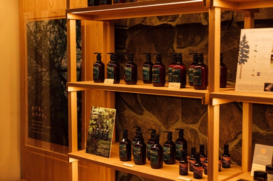 本コーナーは、間伐材をアップサイクルした東急リゾートタウン蓼科オリジナル商品『MORIGURASHI』シリーズのプレゼンテーションの場として機能します。客室アメニティとしてご体験いただいたシャンプー、トリートメント、ボディ&ハンドソープ、オールインワンオイル、カラマツ茶などをお買い求めいただけます。