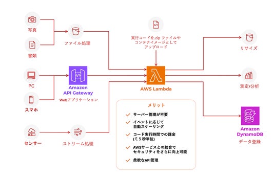 - AWS Lambda : システムの動作(ロジック)をサーバーレスで迅速に展開