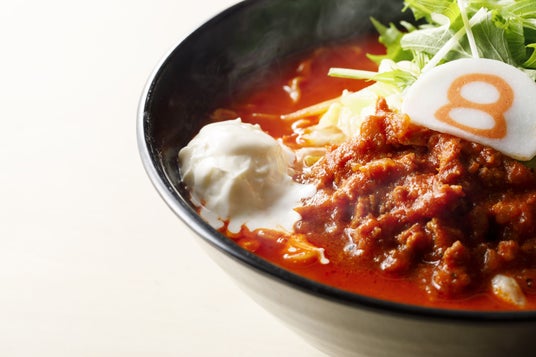 発売から12年、変わらずご好評頂いている8番らーめんの「野菜トマトらーめん」が、今年も帰ってきます。支持され続ける理由は、福井県産「越のルビー」の特徴である甘みと旨みを、程よい辛味で引き立てた特製トマトスープ。「越のルビー」を皮ごと使用することで、フレッシュな風味と果肉感が生み出すジューシーさを活かし、さらにトマトが苦手な方にも楽しんでいただけるよう、肉の旨味を生かして丁寧に仕上げました。ゴーダチーズとモッツァレラチーズをブレンドした「とろけるチーズ」や、3年ぶりに復活した「サワークリーム」をトッピングしたり、「〆のご飯」を加えてリゾット風にアレンジしたりなど、自分好みの一杯を最後の一口までお楽しみください。