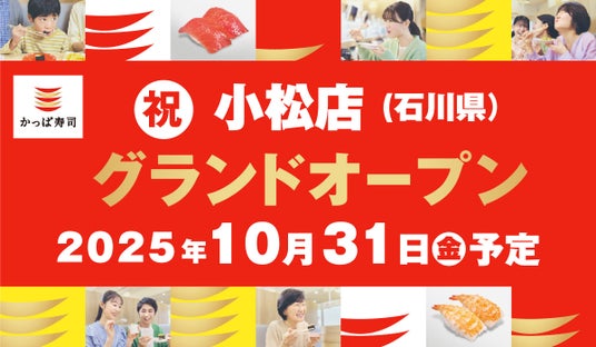 コロワイドグループのかっぱ寿司(カッパ・クリエイト(株) 本社:神奈川県横浜市、代表取締役社長:山角豪)は、2025年10月31日(金)予定で、『かっぱ寿司 小松店』をオープンいたします。