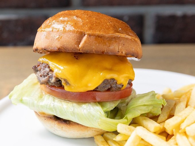 圧倒される厚さ つぶしてかじりつくチーズ和牛バーガー