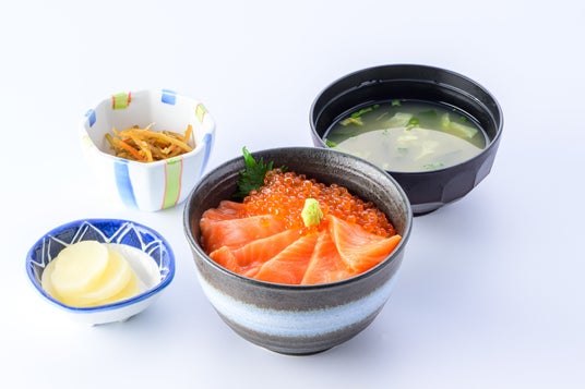 鮭とイクラの親子丼(小鉢・味噌汁・漬物付)