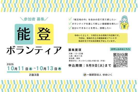 一般財団法人ゆめいくでは、第3回目となる能登半島地震の被災地支援活動を、2025年10月に石川県珠洲市・輪島市で実施します。