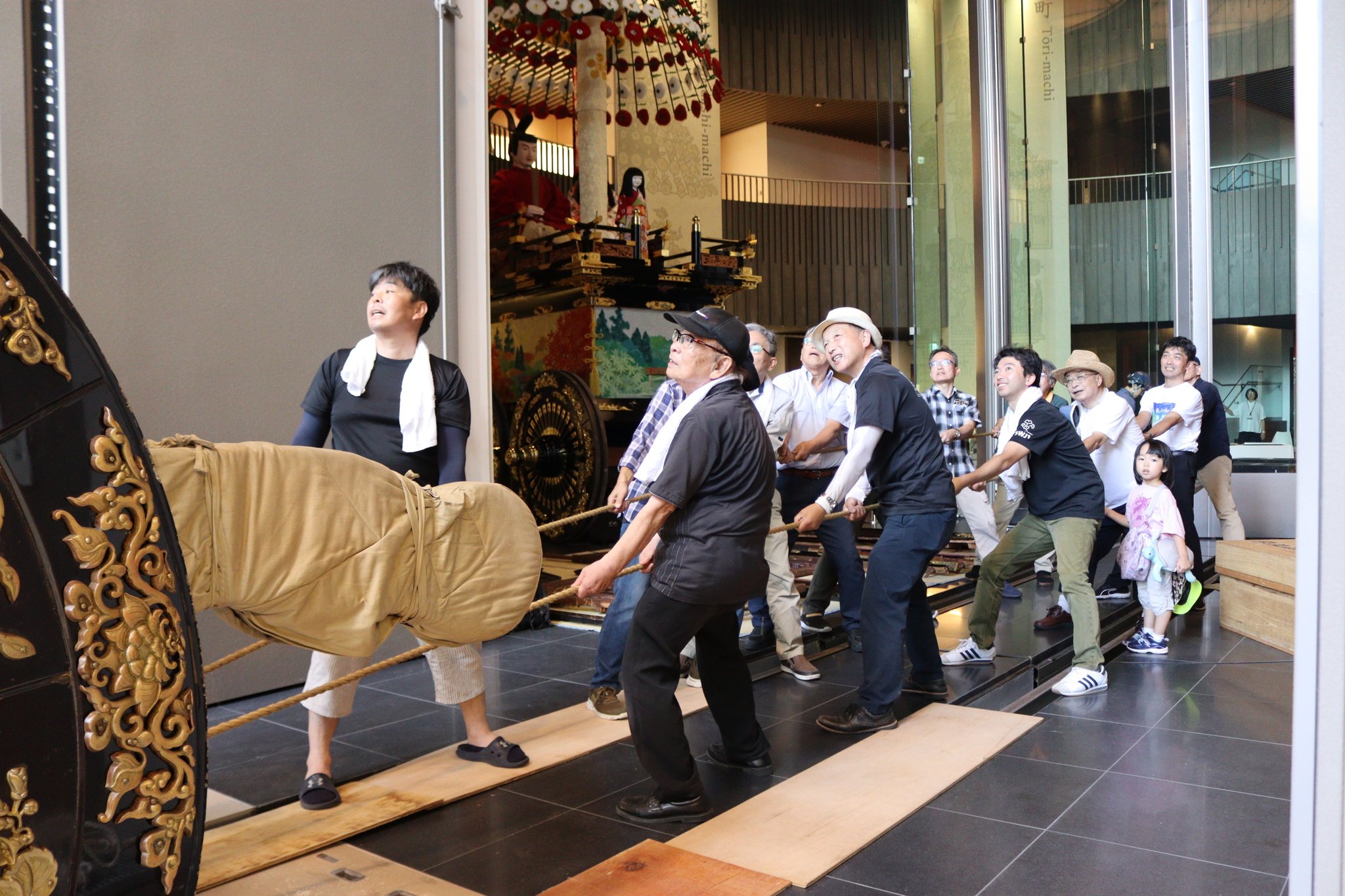 同館では山車全7基を約4カ月ごとに入れ替えて紹介している。5月から展示していた御馬出(おんまだし)町の山車は30日に搬出した。