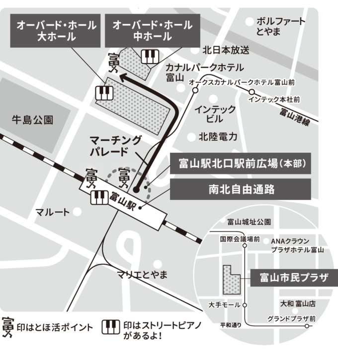 オーバード・ホール 大ホール/中ホール、富山駅 南北自由通路/北口駅前広場、富山市民プラザ
